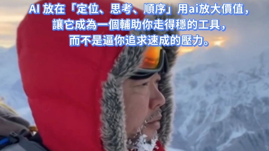 將AI視為一種輔助工具,利用它來強化自身的定位、思考和順序能力,而不是讓它成為追求速成、增加壓力的工具,我們就能更加穩健且高效地在這個快速變化的時代中前行。透過合理運用AI,我們能夠更好地理解自己、提升個人價值,並以更穩定的步伐向著目標進發。