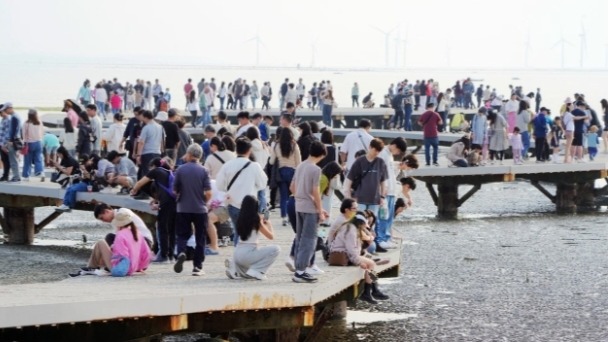 市長高虹安表示,香山濕地擁有豐富的生物多樣性,其中賞蟹步道是民眾親近濕地的場域,退潮時可觀察招潮蟹、彈塗魚等潮間帶生物,幸運的話還有機會發現三棘鱟幼鱟;漲潮期間能觀賞步道上優雅的水鳥,歡迎大家一起來看水鳥群飛,找尋三棘鱟蹤跡。提醒民眾多加利用賞蟹步道,避免進入濕地,以減少踩踏對三棘鱟與海草床棲地的干擾與傷害,共同支持濕地生態保育,使香山濕地成為市民與野生動物共享的永續棲地。