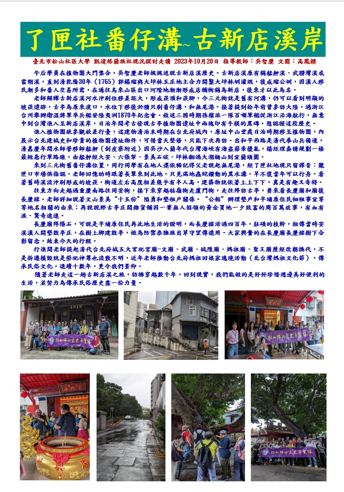 🔺古新店溪-了匣社番仔溝走讀-成果紀錄(文:高鳳櫻)(文:吳智慶老師、松山文史導覽隊提供)