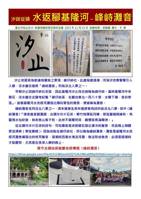 🔺基隆河灘音~峰仔峙社走讀-成果紀錄(文:20231215水返腳基隆河~峰峙灘音 于寧)