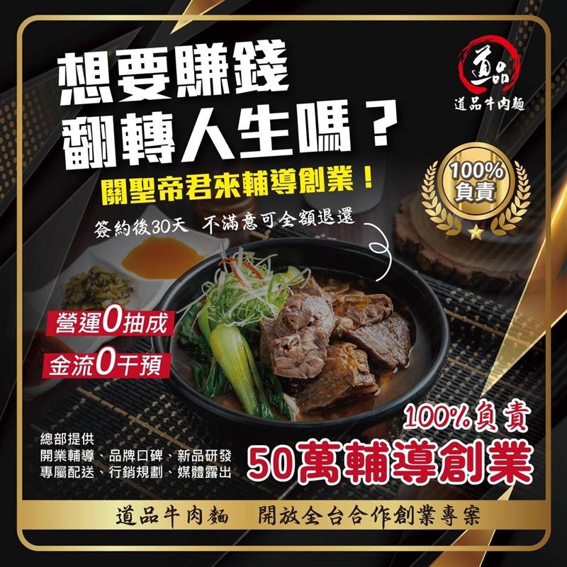 ▲(圖/道品牛肉麵提供) 粉絲專頁道品牛肉麵的全台合作創業專案,不僅為創業者提供了一個低成本、高回報的機會,更帶來了一種全新的生活方式和職業選擇。在關聖帝君的護持下,相信會有越來越多的人通過這一專案,成功翻轉人生,實現創業夢想。