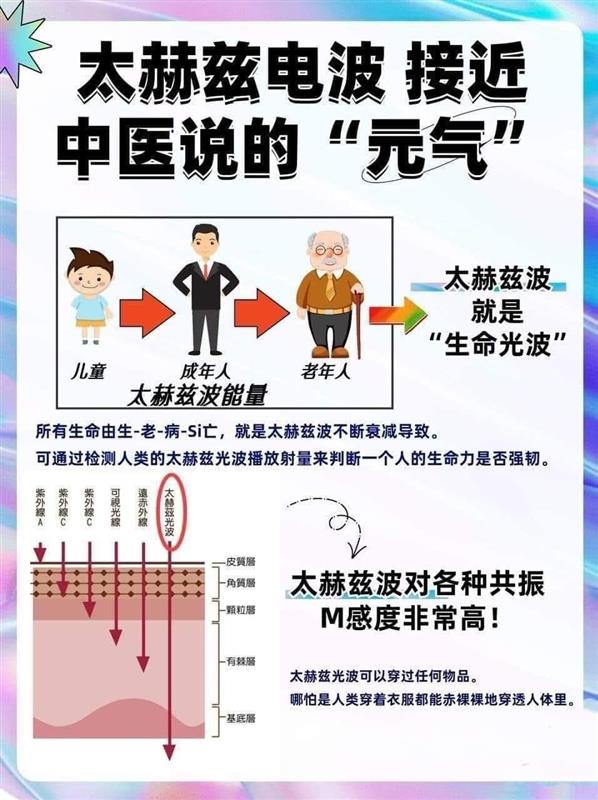 宇宙對頻團隊長表示:“我的宗旨是通過天然方式減少對藥物的依賴,提升免疫力,實現身心健康。我希望讓大家輕鬆獲得健康和美麗。”太赫茲兆能儀(足墊熱儀)利用太赫茲光波和正弦波生物共振技術,模擬地球的自然脈衝,通過每秒1兆次的頻率從足底對應身體的五臟六腑由下而上由內而外提升免疫力。