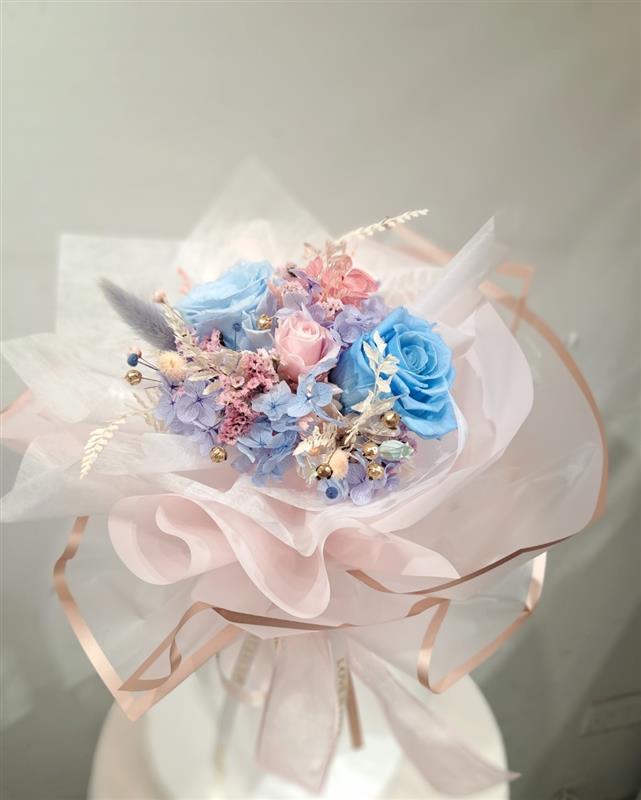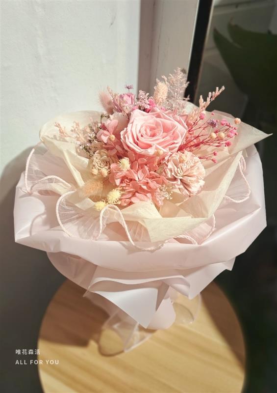 ▲色調甜美的永生不凋玫瑰花禮 (圖/ 唯花森活 提供 )