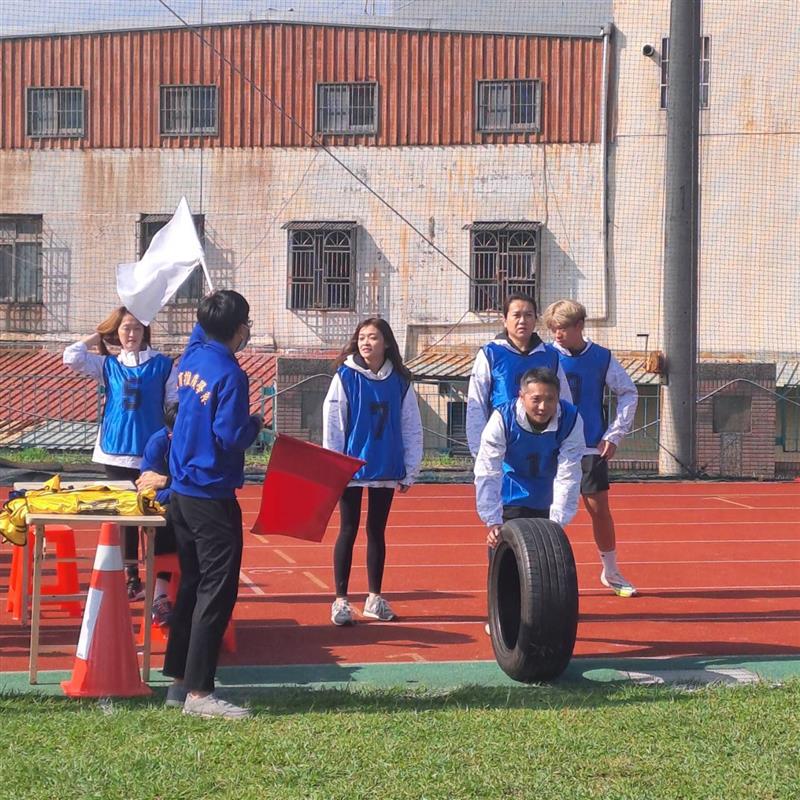 滾滾輪胎好運旺來~參賽人數女生5位男生5位總共10人,起點A至折返點B點相距20公尺,A點B點 各站五位人員已接力方式進行競賽,第一位參賽者需將輪胎從A點滾向B點,人及輪胎過線後再交由第二位接力返回A點,以此類推最快完成的組別即獲勝,比賽的激烈讓人熱血沸騰,即使是觀眾也能感受到場上運動員的熱情與堅持,而我,更是在這樣的氛圍中感受到了運動帶來的喜悅,都讓我們覺得無比的興奮與滿足。