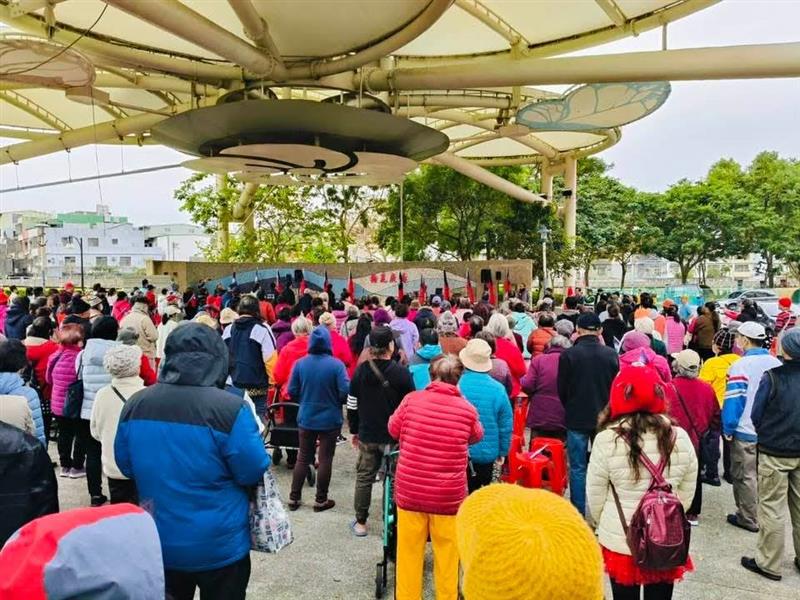 ▲ 2025陸光新城元旦升旗典禮暨千人包水餃轟動登場(影:李麗卿提供) 跟著麗虹老師一起動起來