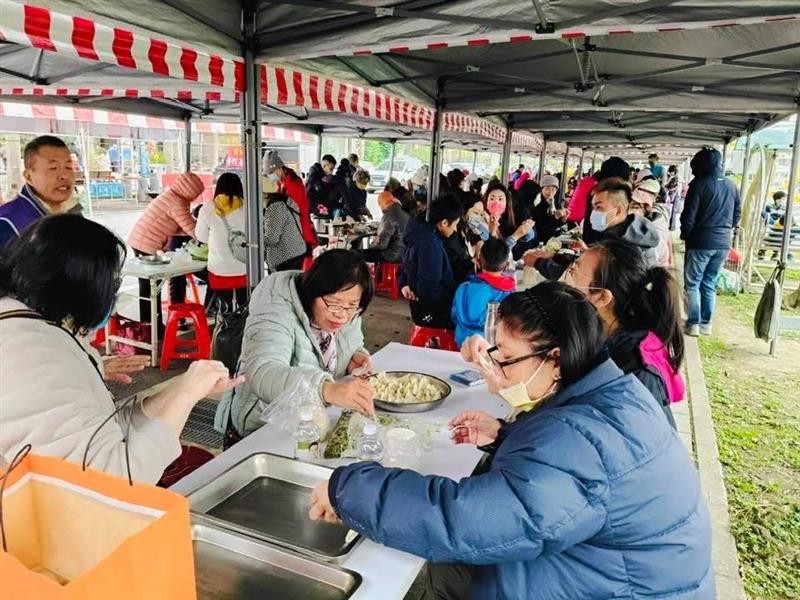 接著,便是大家期待已久的千人包水餃歡樂活動。為了響應這一盛事,居民家家戶戶自備碗筷就好里長非常貼心提前準備了食材,大家圍坐在一起,有條不紊地開始包製水餃,笑聲和談話聲此起彼落,增添了活動的熱鬧氛圍,這不僅是一項傳統美食的製作過程,更是一個增強鄰里情誼、傳承文化的絕佳機會。
