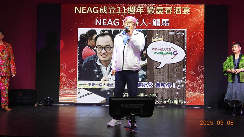 值得一提的是,「NEAG 不要一個人吃飯」 的創辦人龍馬先生也出席了這次春酒。龍馬先生憑藉著獨特的理念和不懈的努力,創立了 “NEAG 不要一個人吃飯”。多年來,他致力於為大家打造一個交流互動的平台,讓更多人在這裡認識朋友、拓展人脈、分享生活。在春酒現場,龍馬先生發表了熱情洋溢的講話,回顧了平台的發展歷程,並對未來的發展方向做出展望,讓在場的每一位嘉賓都感受到了他的決心與熱情。