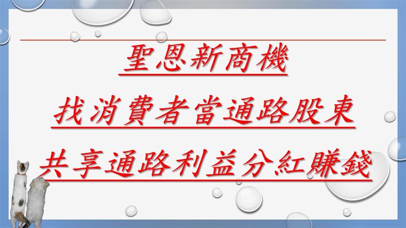 ▲21世紀超強新商機~聖恩新商機~消費者當通路股東 (圖:李麗卿提供)一定賺得到的商機~我們再通路消費一輩子,不管花多少永遠都是消費者,只能花錢不可能賺錢,如果現在有任何通路,像7-11如果實施消費者股東化,讓消費者當通路股東沒有多花錢,即可以省錢又可以分紅賺錢,這樣是不是人人都一定會參與,會立刻成為全民運動?但是任何通路都不可能這樣做,因為他們是既得利益者。現在聖恩生活護照通路,為了要快速引進大量的消費者,開始實施消費者股東化,消息即將會快速傳開,很快就會成為全民運動,所以大家早來晚來都要來,現在我們只要先卡位,然後趕快找家人好朋友一起來卡位,不但我們自己可以分紅一輩子,還可以幫助家人好朋友一起分紅一輩子,所以越早來當股東越有利,先卡位先贏,再晚就來不及了,反正當股東又沒有多花錢。