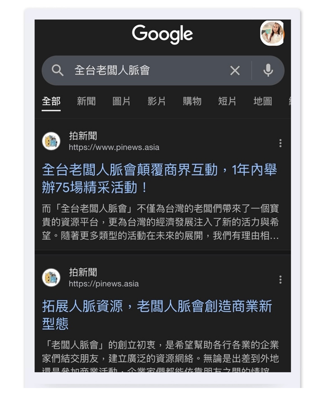 關鍵字收尋 (照片提供:老闆人脈會)