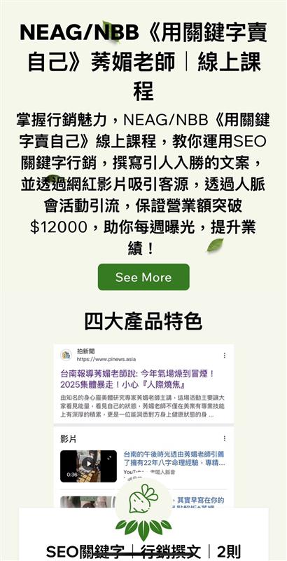 自媒體一頁式網站 (照片提供:老闆人脈會)歡迎參加全台老闆人脈會活動