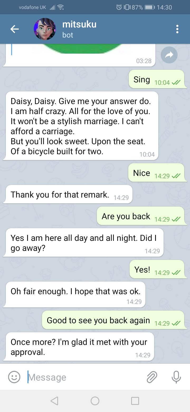 3. **Mitsuku**:這款多次獲獎的聊天機器人,採用了先進的自然語言處理技術,能夠與用戶進行具有深度和寬度的對話。透過不斷的學習,Mitsuku能夠更加了解用戶的需求,提供更加精準的回應。