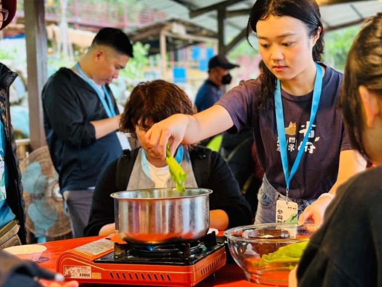 首先走入翠綠的山蘇園,親自認識與採收在地野菜,學習辨識環境中的可食植物;透過與土地的直接接觸,感受到大自然的豐盛與脆弱。接著,他們動手製作「山蘇珍珠」,將野菜轉化為創意點心,體驗從土地到餐桌的樂趣,並思考食物來源與可持續發展的意義。最後,進行弓箭體驗,深入感受原住民狩獵文化的智慧與尊重自然的精神。