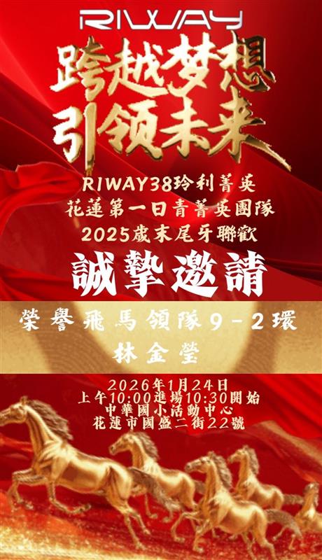 RIWAY38 菁英團隊創始人林金瑩強調,這場千人尾牙不只是一場聚會,而是長期堅持與正確方向所累積出的成果證明。