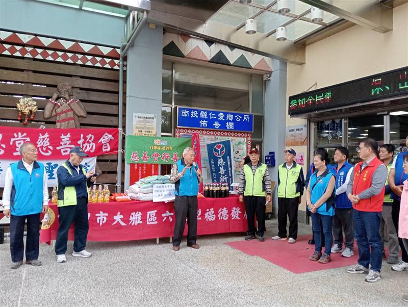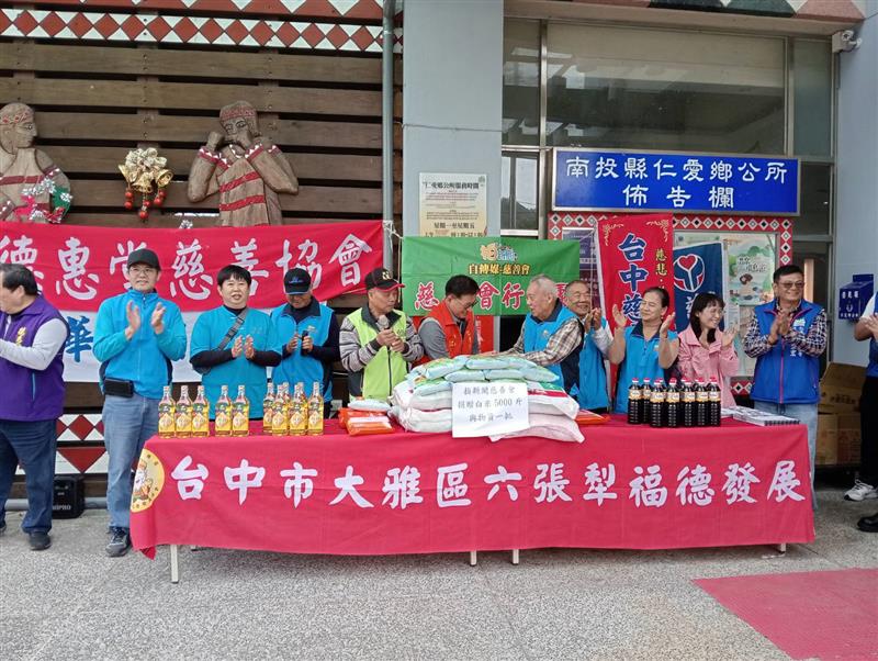 共同舉辦,白米5000斤及民生物資乾糧一批,物資收集在台中倉庫之後,於115年1月23日之前,先將物資雇車運往仁愛鄉公所指定地點存放,於農曆過年前20天發交仁愛鄉公所有社會課收受,在由鄉公所以列冊分發各部落及其他需要的低收入戶領取。