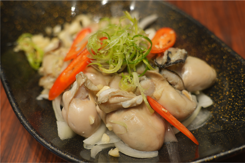 「川燙大生蠔」上桌時蠔肉飽滿、色澤自然透亮,輕咬瞬間湯汁在口中釋放,口感柔滑細嫩,帶有淡淡海洋甘甜。