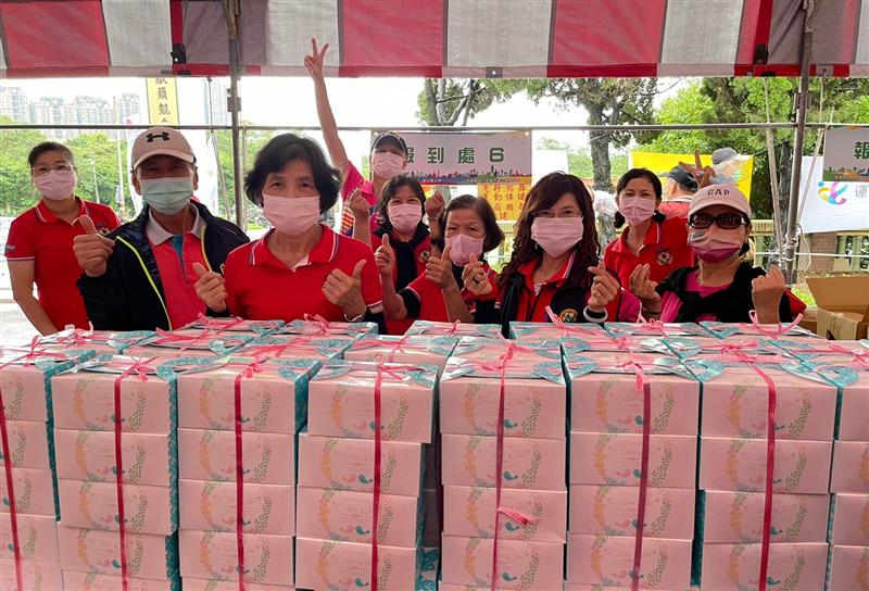 我們龜山體育會主辦單位非常用心貼心,準備了西點 .米.毛巾.水給參與的民眾,整個活動結束後民眾都很守秩序,節目表演完自動排隊,領今天的餐點,大家都心滿意足收穫滿滿滿載而歸。