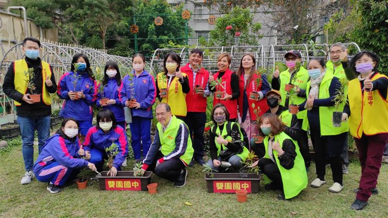 雙園國中是北台灣第一所參與環保愛地球「ESG千樹碳零」公益活動的學校,在白玉鈴校長的帶領下連續三年榮獲學校田園城市組小田園類特優。師生也在「友愛小田園」校園一隅裡發現,學校不同特色,學校有農事課程教學、食農教育、環境教育、生命教育、鄉土創意與美感融入的體驗學習。除了種植許多蔬菜及水果,也利用陽光廚房藉由蔬菜動手做,進行共享以及分享這份喜悅傳遞給喜愛蔬果的朋友們。