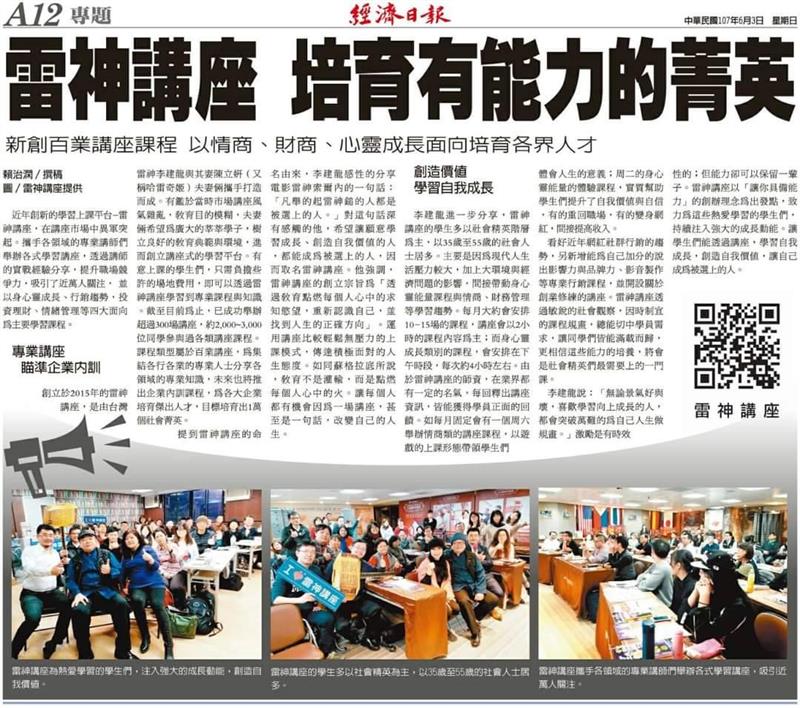 ▲雷神講座 經濟日報的報導(圖/李建龍提供)