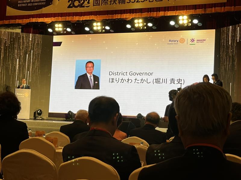日本2720地區總監堀川貴史致詞表示,感謝前任總監和相關人士的努力,使得我們在今年加速了交流步伐並完成了姊妹地區的締結。過去,我們一直是在網上或視訊上討論事項,去年11月,3523地區代表們親自來到了熊本,我們真正見面了並進行了文化交流活動。這令人難以忘懷的美好時光,對於經歷過新冠疫情災難的我們來說意義重大。在今年1月,我們也拜訪了3523地區,感謝您們的熱情歡迎。