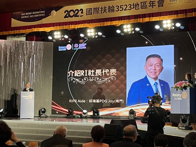 ▲國際扶輪3523地區邱鴻基PDG Joy介紹RI社長代表(圖/尖端奈米科技楊小萍提供)