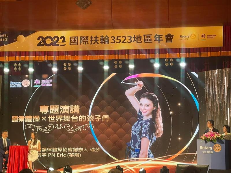 專題演講是邀請瑞星韻律體操協會創辦人瑞莎演講,講題是『韻律體操 X 世界舞台的孩子們』,瑞莎說韻律體操是一種綜合了音樂、舞蹈和體操元素的獨特運動形式。通過這種活動,孩子們可以同時培養身體的靈活性和協調性,並同時表達自己的情感和創造力。在韻律體操的舞台上,孩子們可以展現出他們獨特的風采和才華,並且透過舞蹈的語言,向觀眾傳達他們的夢想和希望。