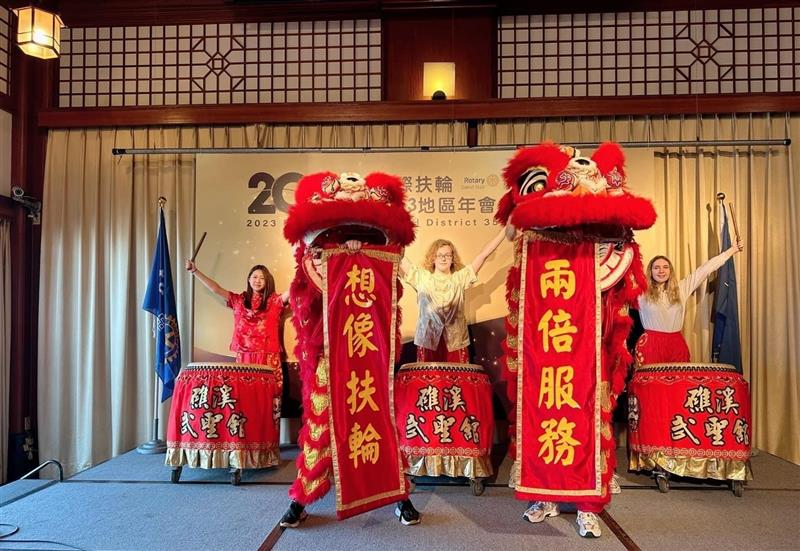 ▲國際扶輪3523地區友誼商店前RYE青少年交換生表演舞獅擊鼓(圖/尖端奈米科技楊小萍提供)