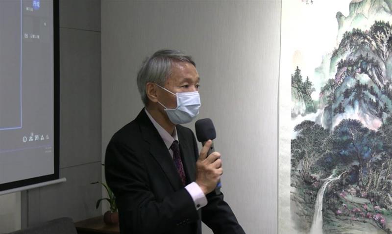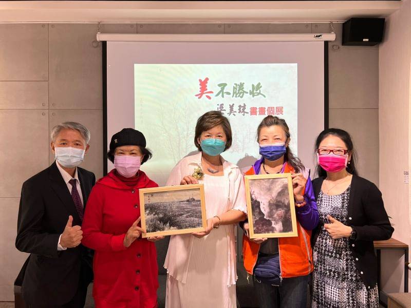 ▲陶巍義老師在藝術家畫展活動時在幫藝術家做開場簡介