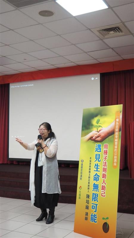 基礎忠恕道院社服處於2023年9月2日舉辦了一場關於種子法則助人助己的公益講座,旨在幫助人們發現生命中的無限可能性。本次活動由基礎忠恕道院社服處主辦,特邀幸福源緣園圓文創志業創辦人陳培綸老師擔任主講嘉賓。