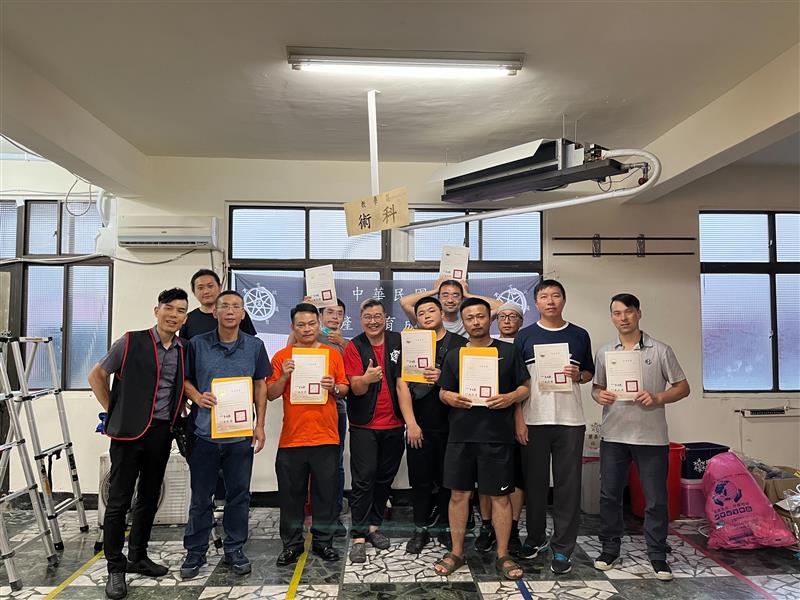 ▲8小時快速培訓的證照班結訓合照(圖/中華民國空調產業育成促進會提供)中華民國空調產業育成促進會導入勞動部勞動力發展署TTQS系統推動「空調維護士」課程創下國內首例。