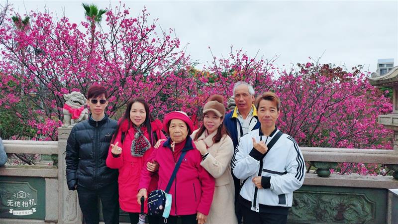 ▲林口竹林山觀音寺全家出遊拜拜賞櫻花2月正是時候 (圖:李麗卿提供)