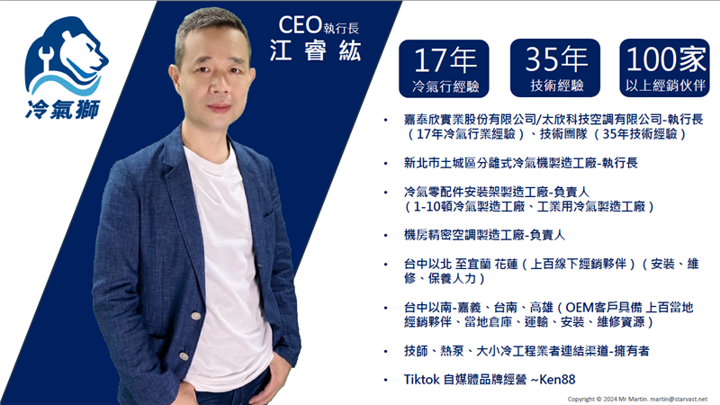 ▲冷氣獅執行長 江睿紘(圖/冷氣獅073.com.tw)粉絲專頁