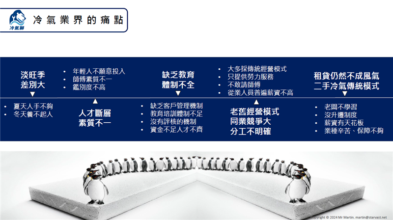 在過去幾年中,冷氣產業一直面臨著越來越大的挑戰,許多業者感受到市場環境的變化,卻不明確變化的原因。我們獨家採訪到冷氣獅073.com.tw團隊,執行長江睿紘及團隊成員共同提出全新企劃方案,分析空調界與大環境的變化,並提供了具體的解決方案。