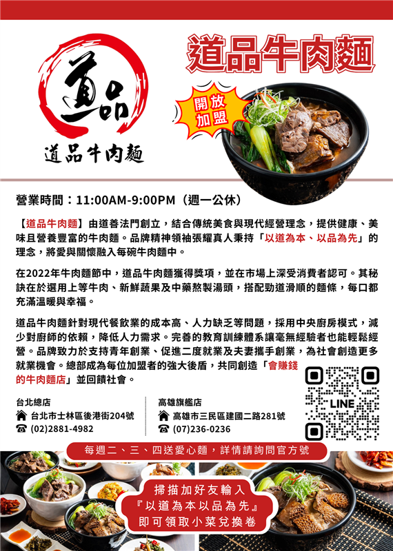 感謝支持,快來享受道品牛肉麵的美味,並輕鬆帶走超值兌換券,下一次免費吃!