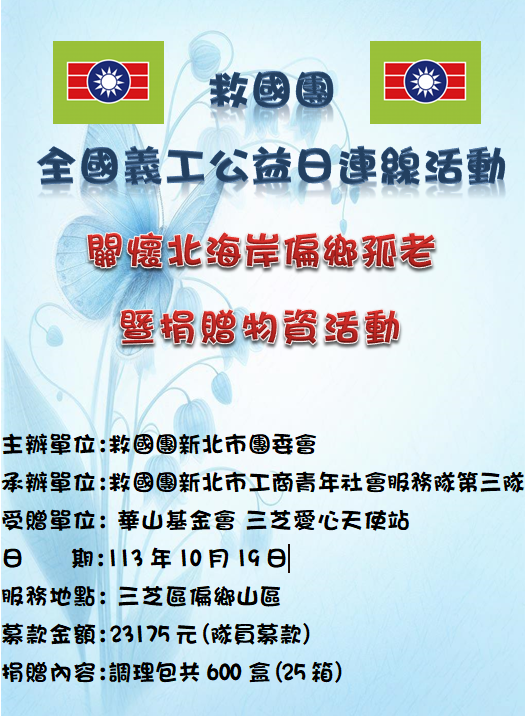 承辦單位:救國團新北市工商青年社會服務隊第三隊