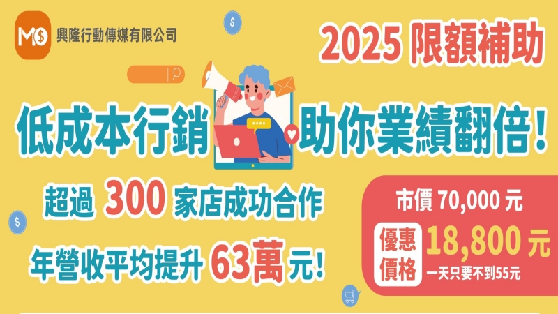 興隆行動傳媒提供彈性化的行銷專案,收費方案依照需求客製化,每月費用從1,600元至10,000元不等,適合餐飲、零售、美容、診所、汽車服務等行業。不論是剛創業的新店,或是想提升業績的老字號品牌,都能透過興隆行動傳媒的服務有效提升數位曝光,吸引更多顧客。
