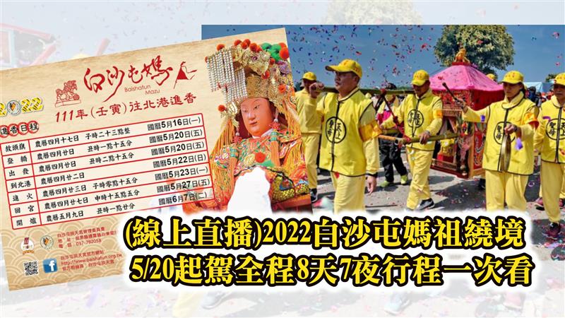 ▲5/23白沙屯媽祖回鑾拱天宮現場直播即時畫面▲5月22日(日) 23:00~5月23日(一)3:00進火、出北港: