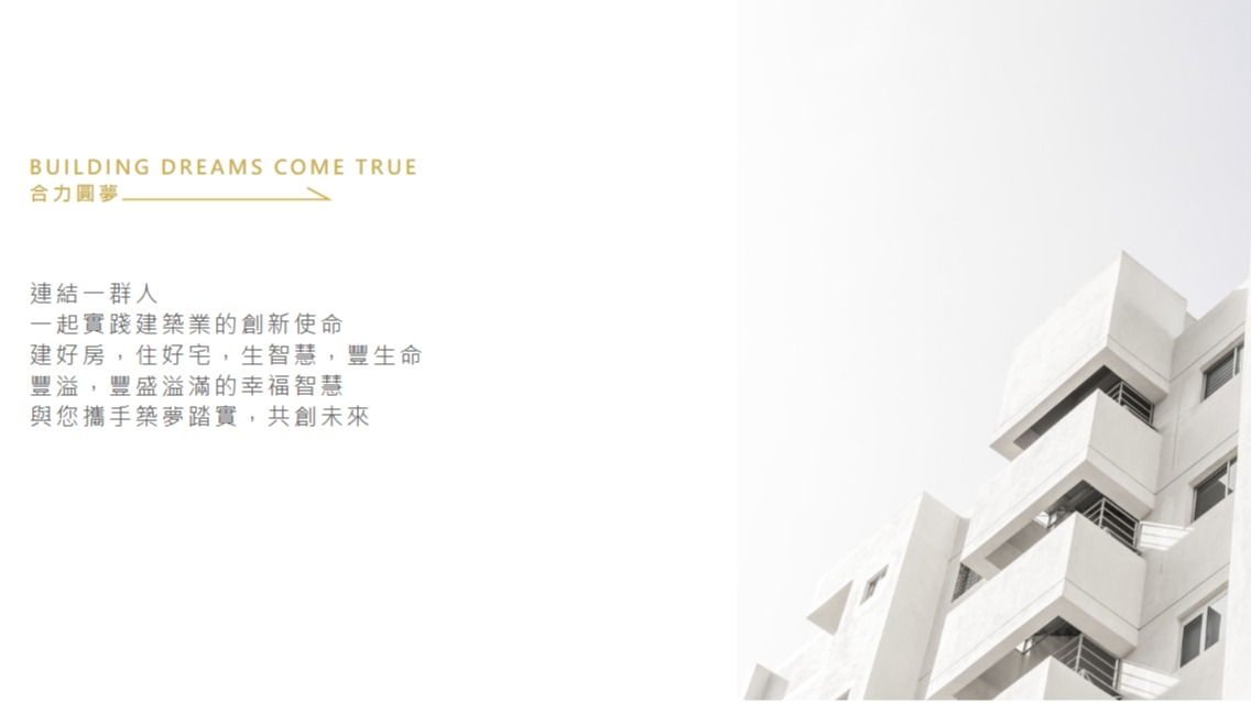 豐溢一路走來,初心始終如一,堅持企業理念『期許成為全民的造屋築夢實踐者。』
