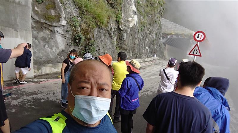▲雙十連假第二天南橫公路天池向陽段落石民眾自拍解悶(圖/洪明雪提供)