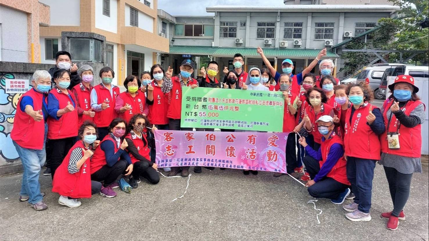 志願服務隊隊長林鳳琴表示,此次捐贈活動集結了花蓮縣政府客家事務處志願服務隊、花蓮縣義民堂及勇信企業社等單位共襄盛舉,共募得了5萬5,000元。志工隊大哥大姊都很有愛心,紛紛捐出自己的值班費、家中二手物品拍賣所得等,雖然金額不大,但都是志工們的心意,希望能幫助到需要協助的人。