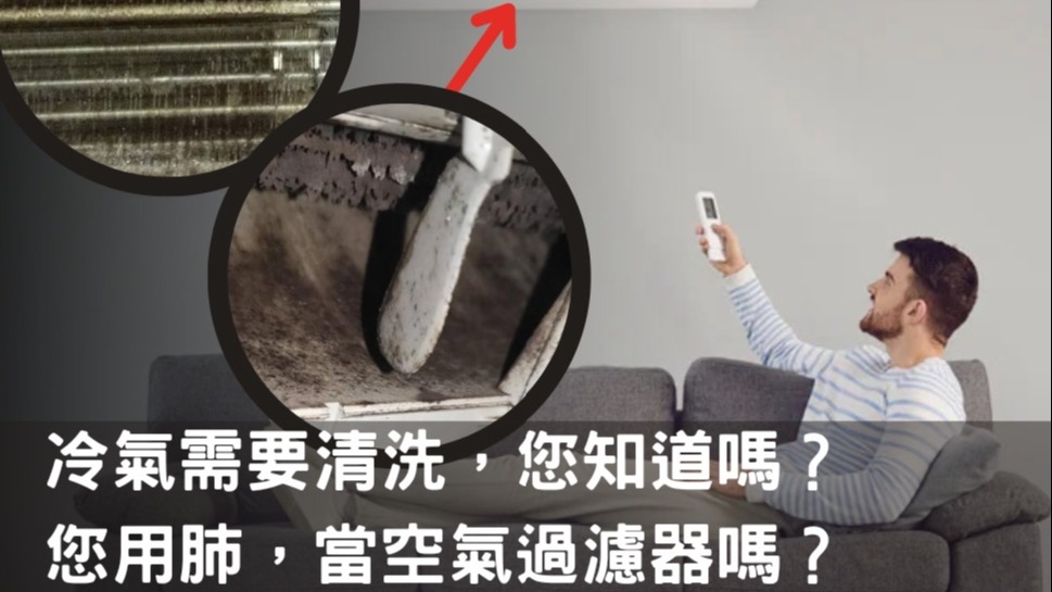 在炎熱的夏季從公司到住家,我們一天將近有20個小時都在冷氣房裏,通勤時我們會戴上口罩,但是沒有清洗的冷氣就像沒更換濾芯的淨水器,不論空氣源的清潔與否,經過髒污的室內機吹出來,就是受到污染的空氣,而勇敢的我們,正用自己的肺來對抗這些髒污。