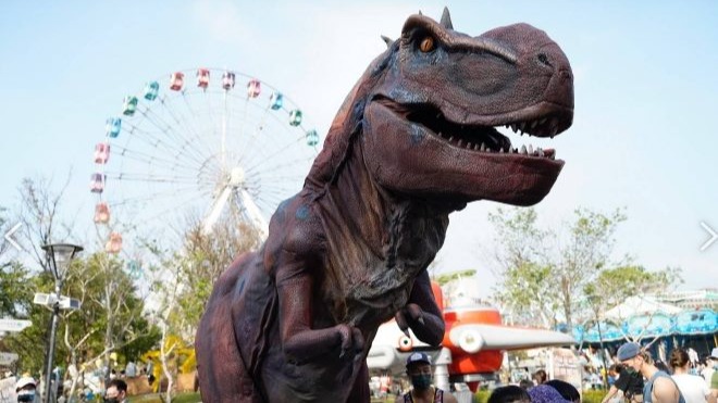 「藝想台灣」劇團特別為兒童新樂園全新改編恐龍重生沉浸式體驗秀,將樹蛙廣場變成遠古叢林,集結全臺頂尖表演藝術家化身為尋龍者,帶領超擬真的8公尺霸王龍在舞臺上驚喜現身;靈巧的迅猛龍則是跳上觀眾席,近距離與小朋友互動嗨翻全場;還有多隻超萌恐龍寶寶全家亮相,帶領大小朋友回到史前時代。