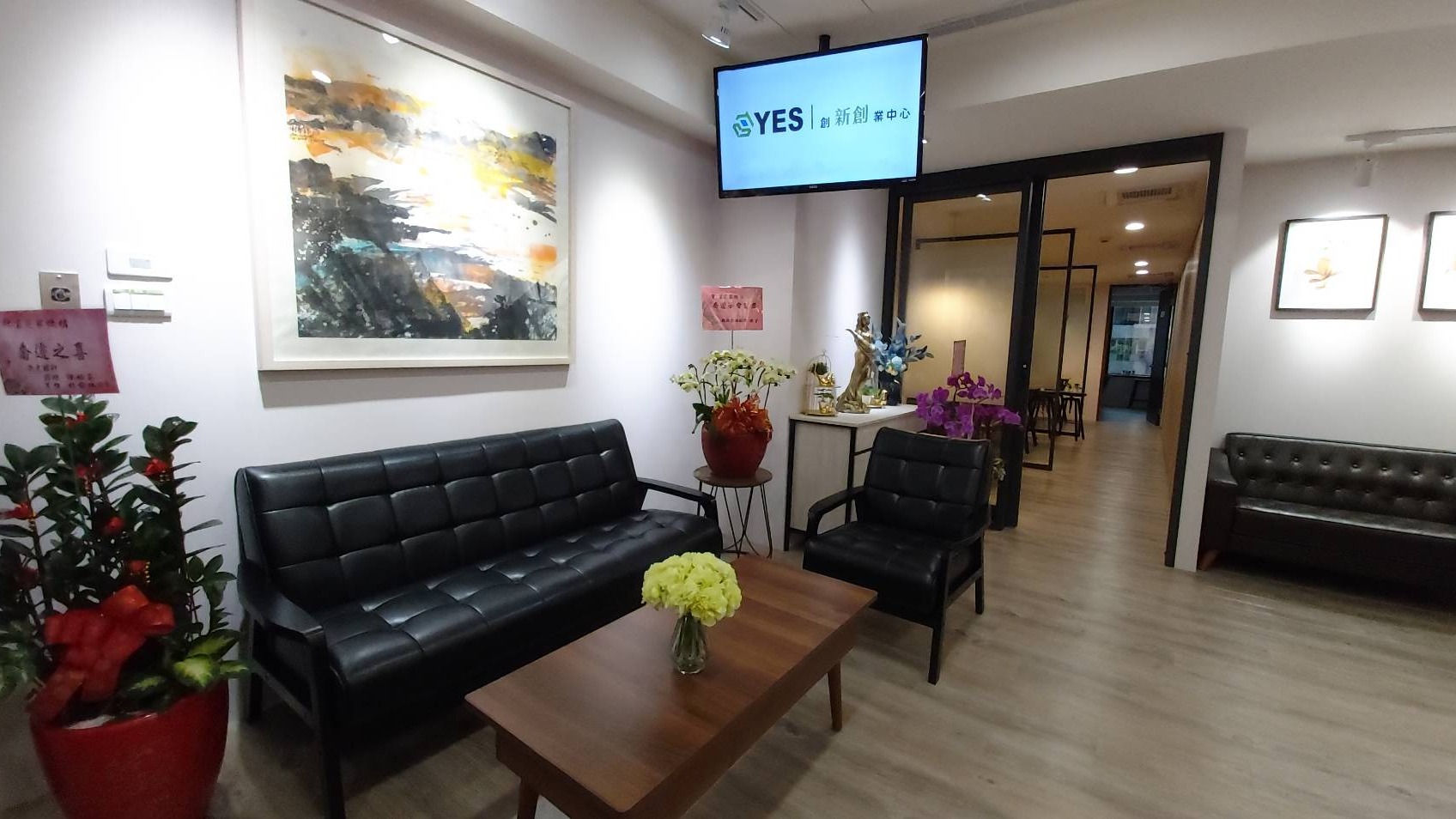 走入富YES創新創業中心,映入眼簾的電視牆播放著本館、中山分館場地的租借介紹,往前一步進到洽談區,瀰漫著溫馨典雅氣息,開放進駐企業與貴賓洽談。進入特色會議室,創辦人黃義盛表示當初設計共享空間、會議室,期望彈性運用,當有大型會議、大型講座活動,將會開啟中間拉門,即可變成大共享空間,竟成為熱門會議室、活動租借場地空間。