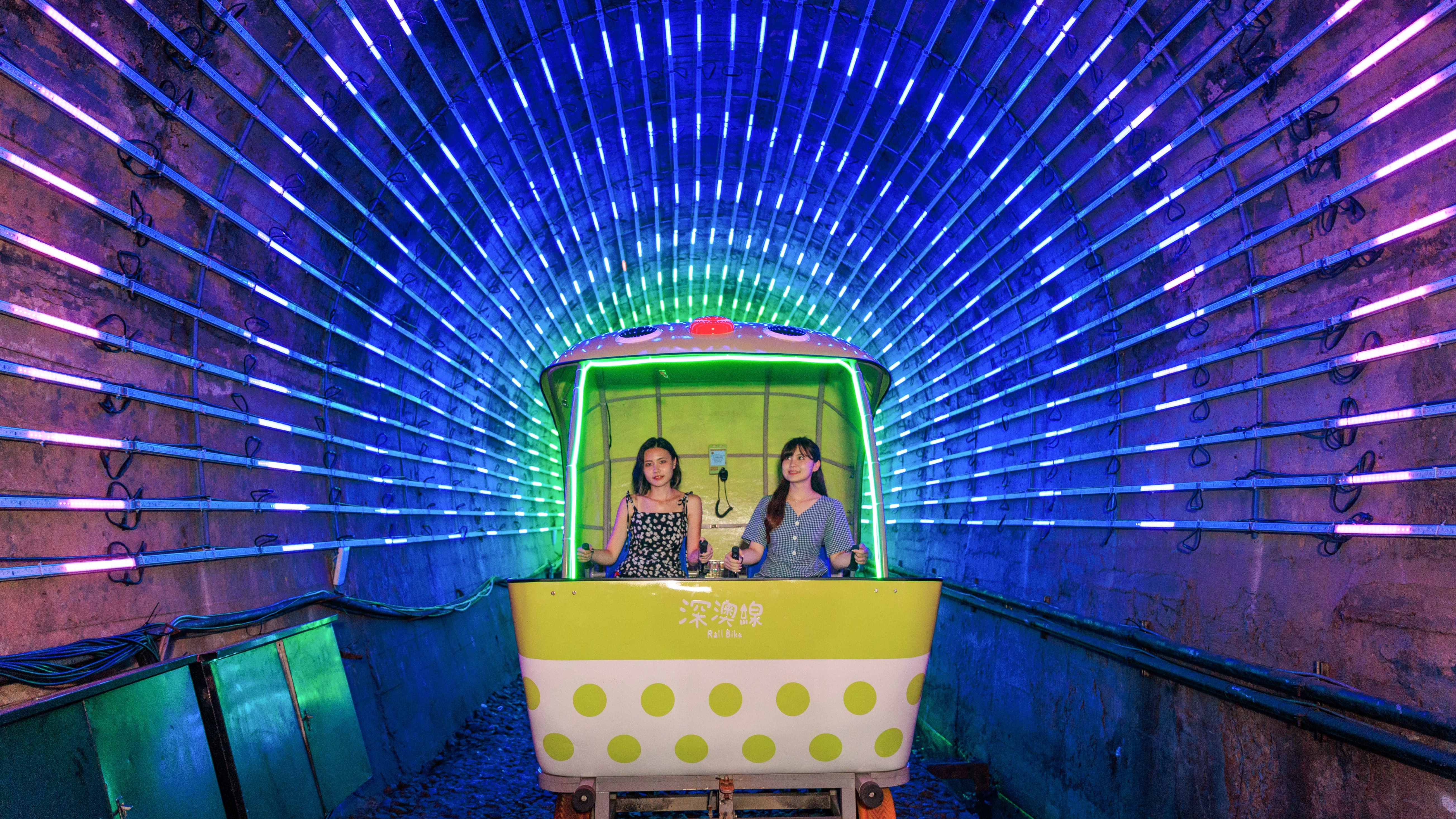 深受遊客喜愛的光雕隧道,配合夜間營運,設計了七夕為主題的全新光雕動畫。進入隧道後如星空般的星星燈引領著遊客繼續向前探索,深入隧道後,絢麗而耀眼的光雕帶來豐富的視覺享受,描述著七夕情人節故事,眼前流星劃過綻放出燦爛的煙火,喜鵲群由燈海中飛出化身成鵲橋,一年一度重逢的牛郎織女相遇在此,象徵著美好的愛情,如萬花筒般的彩虹隧道隨即出現,搭配著星光點點,遊客彷彿身處在夢境般,別具浪漫的氛圍。出隧道後緊接著是光彩奪目的愛心燈海廊道,騎乘時猶如穿越到另一個空間,帶給遊客一連串驚喜的旅程。深澳月台旁還有設置夢幻禮物盒場景,搭配可愛的吉祥物玩偶,遊客們可走進禮物盒內,一同拍攝照片,留下美好的回憶!