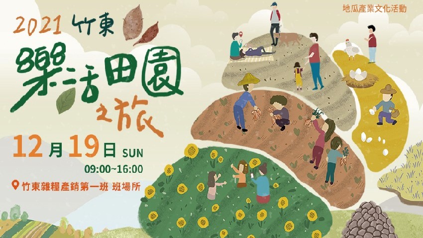 這盛產甘藷的季節裡,將於12月19日在竹東雜糧產銷班(班場所地址: 310新竹縣竹東鎮中興路二段297巷137號)舉辦2021竹東樂活田園之旅!以漫遊田園的氛圍為主軸,在兒時烤地瓜香氣為引領下,有焢窯、挖地瓜、撿雞蛋等農事生活體驗外,現場還有趣味的泰雅原住民生活遊戲。而環繞於四周更特別設置田中裝飾,稻草手工堆砌的田間會客室、向日葵花海製作花型栱門、小森泰雅等等佈置給賓客留下滿滿回憶美照,快在我們的帶領下進入農村療癒之慢活時光吧!