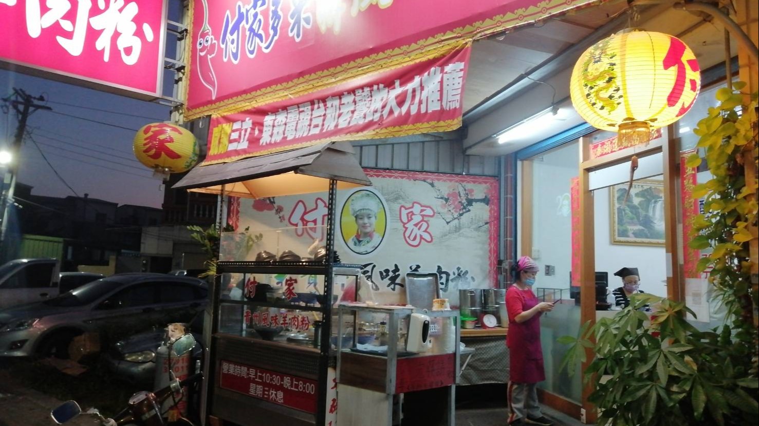 付家,沒錯,這一個姓氏是貴州姓,老闆娘即為貴州姑娘,經營著貴州風味的羊肉粉而走紅,也因為滋味夠正宗也快速打響了名號,再加上媒體爭相報導,每每到了用餐時間頓時萬人空巷,一位難尋。