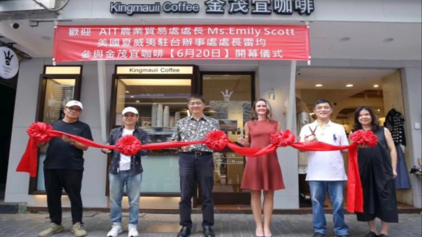 在金茂宜咖啡台北旗艦店的開幕式上,AIT農業貿易處處長Ms. Emily Scott,,以及美國駐台夏威夷辦事處處長 雷均先生皆到場祝賀。