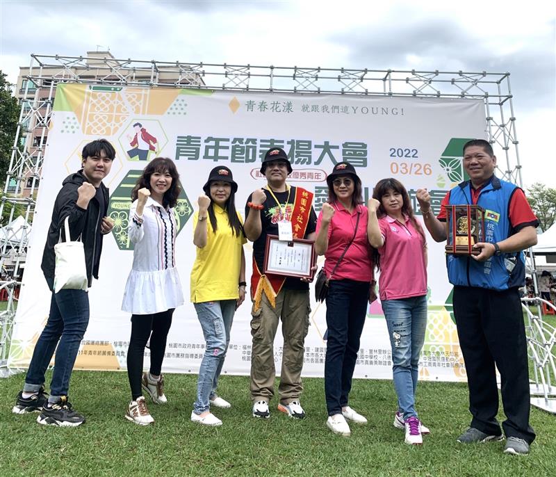 ▲榮獲111年桃園市社會優秀青年姜毓軒(中左)(圖/洪明雪提供)