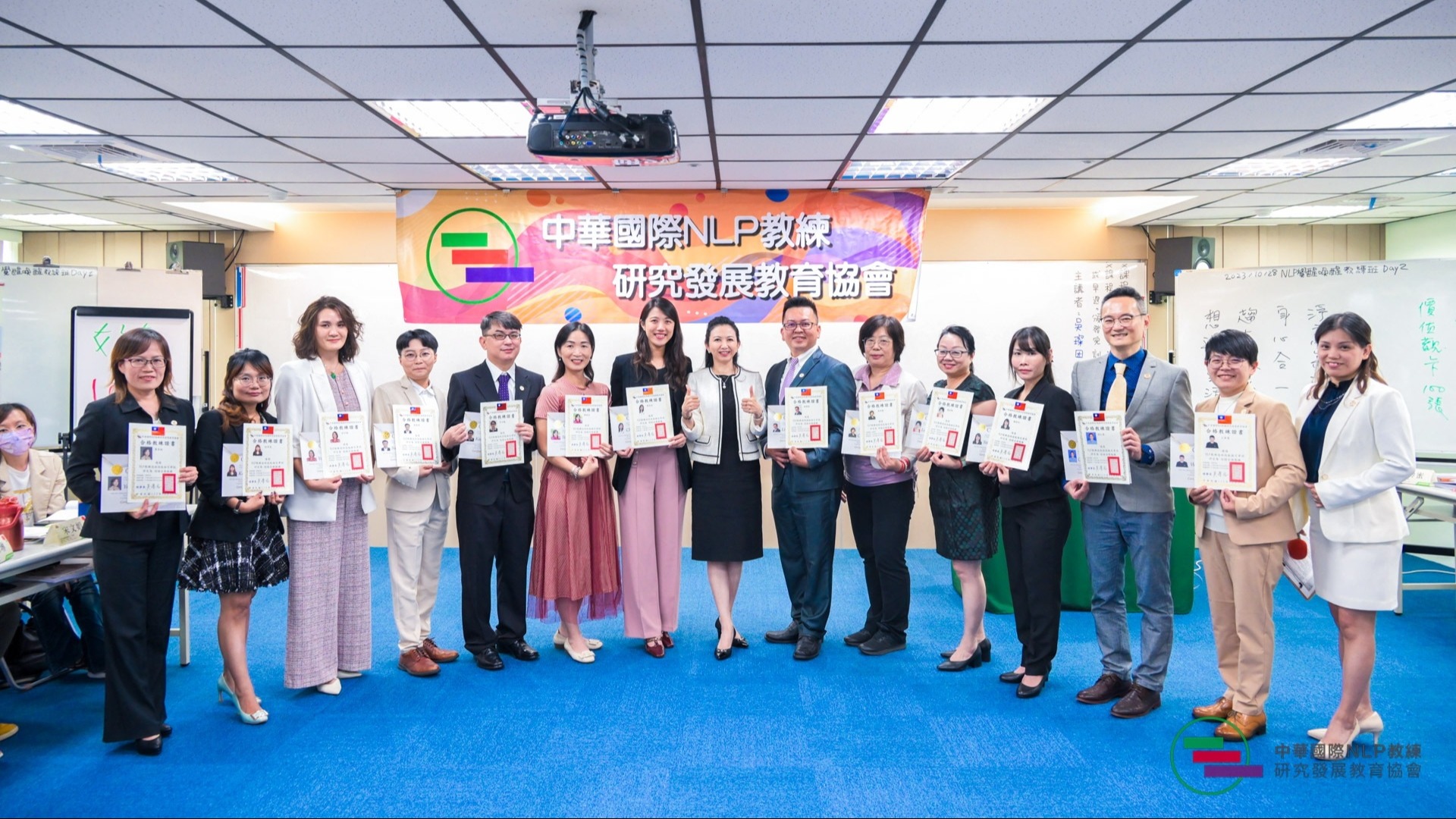 叡得教育訓練創辦人吳璨因老師所成立的「中華國際NLP教練研究發展教育協會」,是全國第一個NLP教練的正式組織,以社會教育、家庭教育為出發,舉辦公益講座及公益活動,目標是創造一萬個NLP家庭,讓社會氛圍可以更和諧向善。這次儀式也為NLP教練技術的推廣和應用提供了一個良好的機會。通過這些合格教練的努力和專業能力,NLP教練技術在有人有需要的地方將得到更廣泛的認同和應用,為更多人帶來個人成長和轉變。