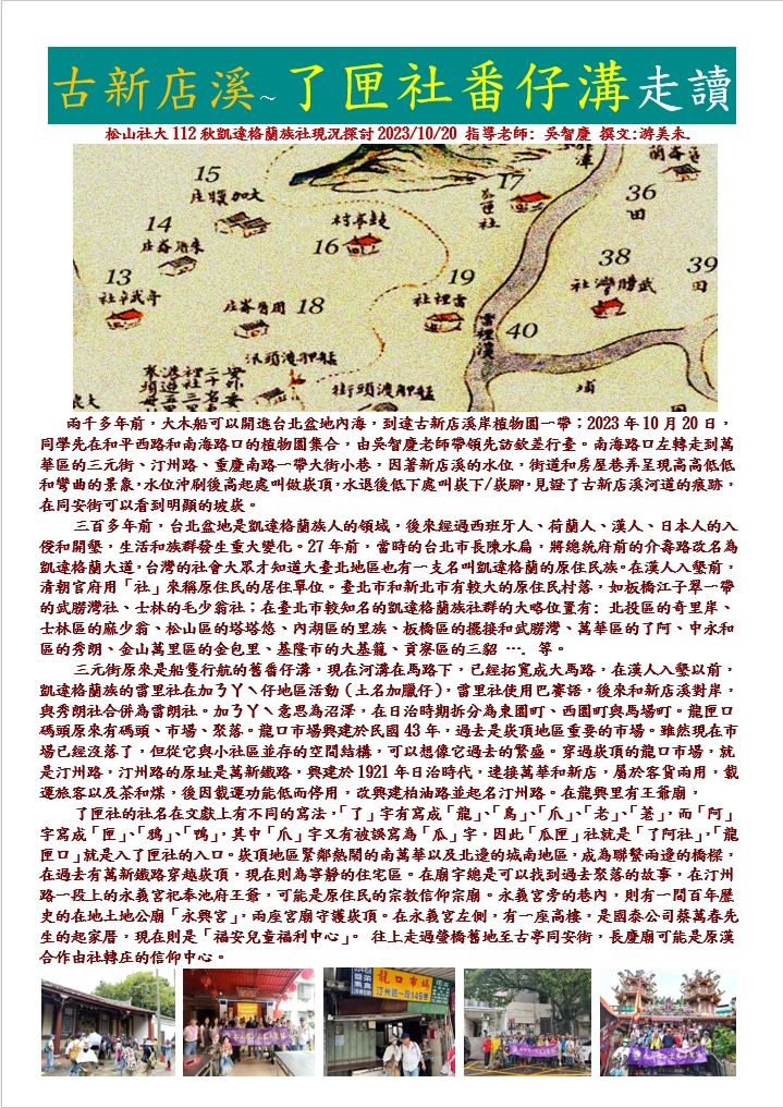 🔺古新店溪-了匣社番仔溝走讀-成果紀錄(文:高鳳櫻)(文:吳智慶老師、松山文史導覽隊提供)