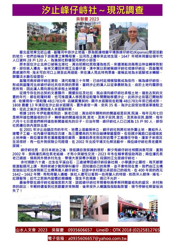 🔺基隆河灘音~峰仔峙社走讀-成果紀錄(文:20231215汐止江北岸-峰仔峙社探尋 蔡芳曄)(文:吳智慶老師、松山文史導覽隊提供)